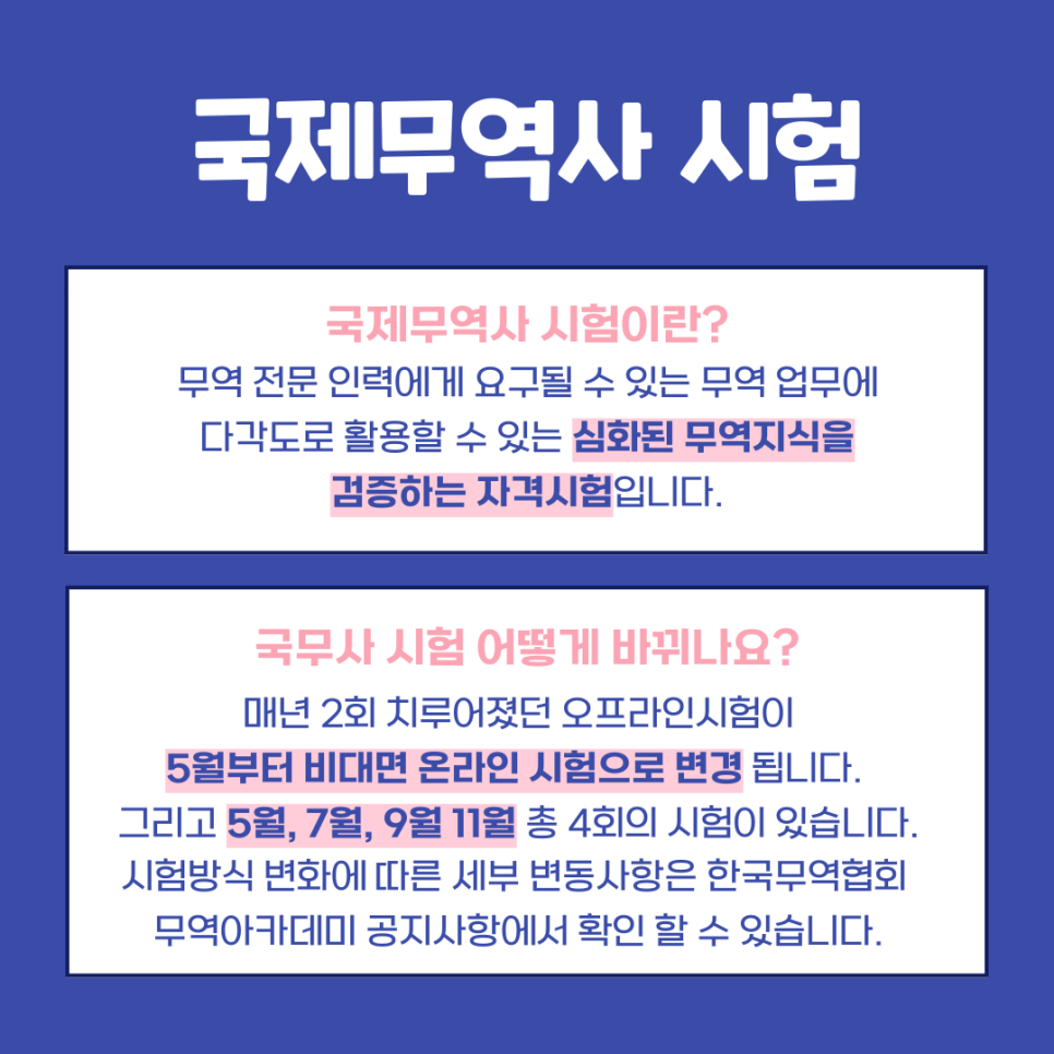 이상 5월부터 바뀐 국제무역사 시험에 대한 포스팅이었습니다.