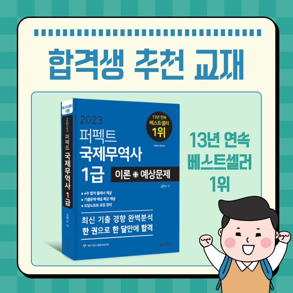 방금 알려드린 베스트셀러 1위 교재인 퍼펙트 국제무역사 교재로