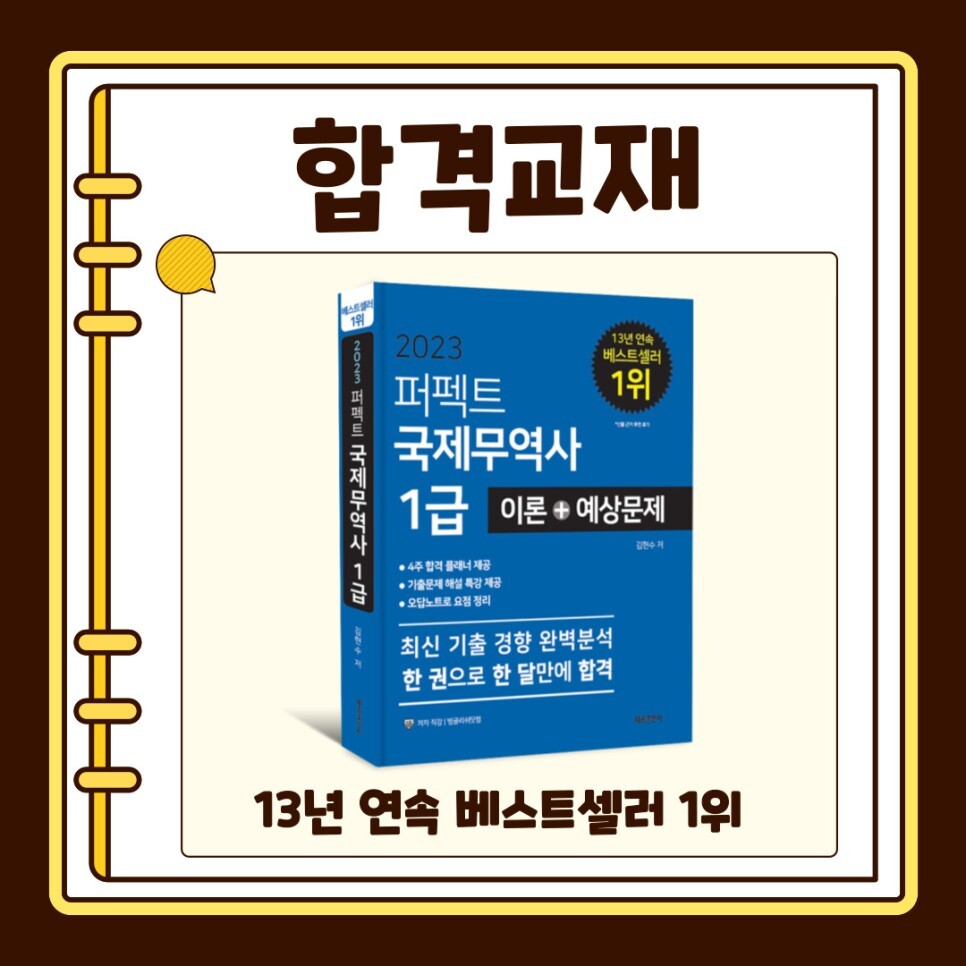 13년 연속 베스트셀러 1위를 한 퍼펙트 국제무역사 1급 교재입니다.